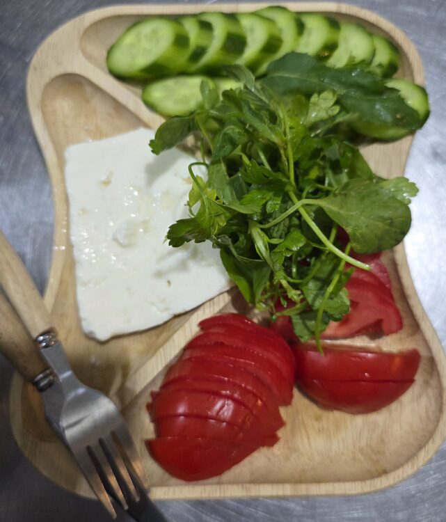 نان ، پنیر، خیار و گوجه